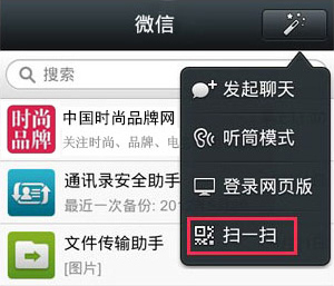 Step1:打開微信,點(diǎn)擊右上角的圖標(biāo),選擇“掃一掃”